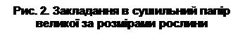 Збирання рослин слід проводити у ясну погоду, після спадання роси. Зібрані після дощу або вранці (з росою) вони погано висихають або чорніють під час сушіння. У викопуваних екземплярах слід добре очищати підземну частину від землі. Рослини для гербарію беруть типові за розміром для даного виду. Дрібні слід брати в кількості 3-5, великі під час закладання в сушильний папір відповідно згинають один або два рази у вигляді літери “Z”, щоб вмістилися в аркуші паперу (рис.2). У випадках, коли рослина дуже велика і згинати її недоцільно, беруть тільки характерні частини – відрізки пагонів з листками, квітконосний пагін з суцвіттям, квітками тощо. Для визначення деяких рослин, крім квіток, обов'язково треба мати плоди (наприклад, рослини з родин Осокові, Айстрові, Бобові, Селерові та ін.).