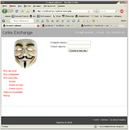 Новый пароль будет зашифрован и при необходимости записан в cookie-набор пользователя. Вид формы смены пароля приведен на рисунке 17.