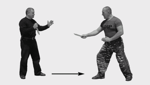Наиболее простой способ движения в ножевом бою – движение одиночным шагом.