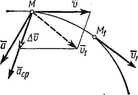 Ускорение — векторная физическая величина, характеризующая быстроту изменения скорости. Оно показывает, на какую величину изменяется скорость тела за единицу времени. В СИ единицей ускорения является метр на секунду в квадрате Пусть в некоторый момент времени t движущаяся точка находится в положении М и имеет скорость v, а в момент t1 приходит в положение M1 и имеет скорость v1 (рис. 8).