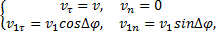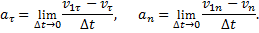 Перейдем в этом равенстве от векторов к их проекциям на оси Mτ и Mn, проведенные в точке М (рис.11). Тогда на основании теоремы о проекции суммы (или разности) векторов на ось получим: