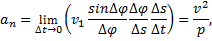 Правую часть выражения an преобразуем так, чтобы в нее вошли отношения, пределы которых нам известны. Для этого умножим числитель и знаменатель дроби, стоящей под знаком предела, на ∆φ∆s. Тогда будем иметь
