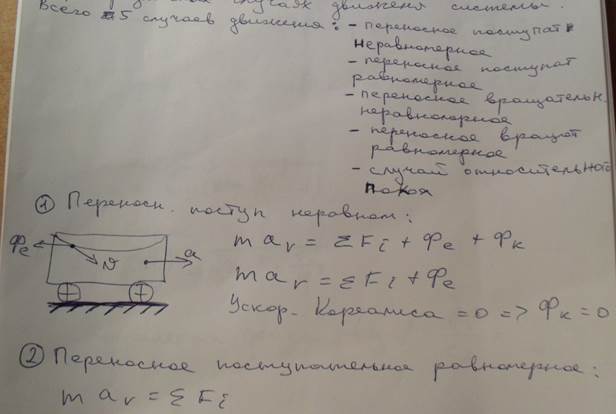 Виды уравнения относительного движения точки при различных случаях движения системы