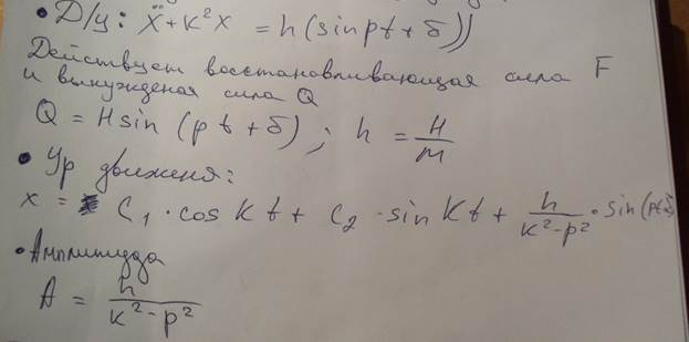 11.Вынужденные колебания материальной точки БЕЗ учёта сил сопротивления (диф ур движения, уравнение движения, амплитуда, начальная фаза)