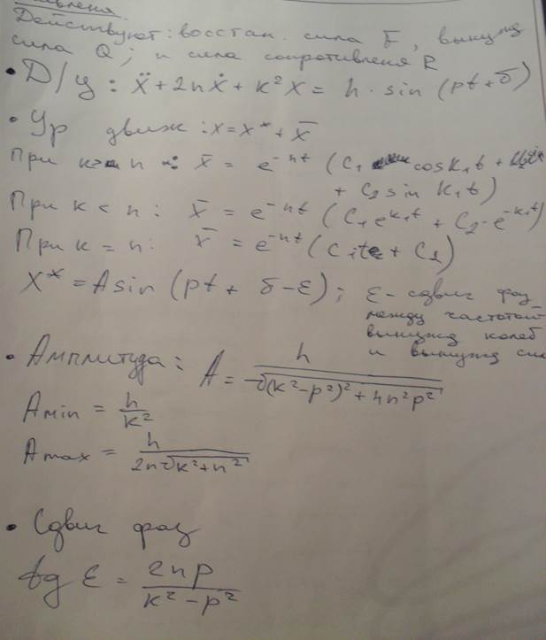 13.Вынужденные колебания с учётом сил сопротивления (диф ур движения, уравнение движения, амплитуда, начальная фаза)