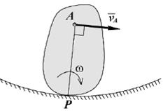 | МЦС (точка P) находится в точке соприкосновения фигуры с кривой, так как скорости точек фигуры и неподвижной кривой, находящиеся в соприкосновении, равны между собой и, следовательно, равны нулю. Если известна скорость какой-либо точки A фигуры, то угловая скорость .
