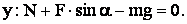 Решение: на груз действуют: Выбрав за положительное направление оси Х направление движения тела, а ось У направив вертикально вверх, и, найдя проекции сил на оси, запишем уравнение (1) в проекциях на эти оси: Из уравнения (3) находим, что Тогда Подставим это выражение в (2) получим: откуда