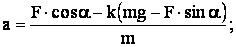 Задача №2. Груз массой 45 кг перемещается по горизонтальной плоскости под действием силы 294 Н, направленной под углом 30о к горизонту. Коэффициент трения груза о плоскость 0,1. Определить величину ускорения груза.