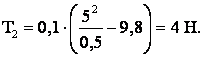 Решение: на груз действуют две силы: сила тяжести и сила натяжения нити. Величина и направление силы тяжести не зависят от положения груза, а величина и направление силы натяжения изменяются при движении. Рассмотрим каждый случай отдельно. 1-ый случай (рис. а): тело находится в нижней точки траектории. Сила тяжести Направим ось У по радиусу к центру окружности и запишем второй закон Ньютона в проекции на это направление: где тогда откуда 2-ой случай (рис. б): тело находится в верхней точке траектории. В этом случае обе силы и сила Направим ось У опять по радиусу к центру окружности и запишем второй закон Ньютона в проекции на эту ось: где откуда определим Ответ: Т1 = 6 Н; Т2 = 4 Н; Т = 2 Н.