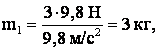 Задача №9. Две гири весом Р1 = 3 кг и Р2 = 5 кг соединены нерастяжимой невесомой нитью и перекинуты через неподвижный блок. Определить ускорение, с которым движутся гири и натяжение нити.