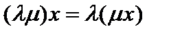1) для любых элементов (коммутативность сложения); 2) для любых элементов (x+y)+z=x+(y+z) (ассоциативность сложения); 3) существует элемент (называемый нулевым элементом, или нулем пространства L) такой, что для любого элемента (существование нулевого элемента); 4) для любого элемента существует элемент (называемый обратным к x) такой, что (существование обратного элемента); 5) для любых элементов и любого числа α α(x+y)=αx+αy (дистрибутивность умножения суммы элементов на число); 6) для любых чисел любого элемента (α+β)x=αx+βx (дистрибутивность умножения суммы чисел на элемент); 7) для любых (вещественных) чисел α, β и любого элемента (αβ)x=α(βx) (ассоциативность умножения на число); 8) для любого элемента 1x=x (свойство единицы).