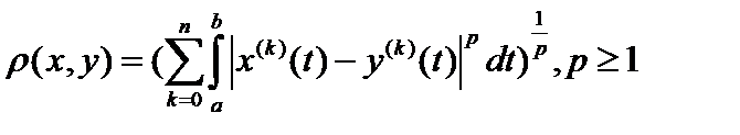 7. или пространство раз непрерывно дифференцируемых функций с супремальной метрикой (такая метрика называется дифференциальной): .
