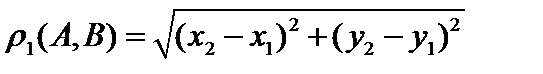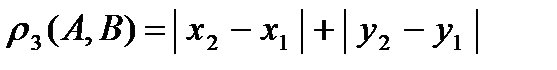 Пример 1. На плоскости для точек и определим расстояние тремя различными способами и покажем, что введенные расстояния являются метриками, то есть проверим выполнимость аксиом.