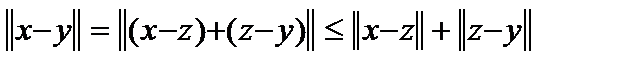 2. Любое нормированное пространство является метрическим с метрикой . Выполнение первых аксиом очевидно. Третья выполняется в силу . Обратное, вообще говоря, неверно, то есть метрические пространства, вообще говоря, не являются нормированными. Но если потребовать, чтобы метрическое пространство обладало инвариантностью относительно сдвигов, то есть и однородностью относительно растяжений, то есть , то тогда верно и обратное и норма элемента есть метрика, второй элемент которой есть ноль.