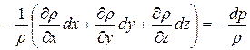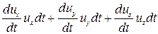 Приведем систему уравнений Эйлера к виду удобному для интегрирования. С этой целью умножим каждое из уравнений на соответствующие перемещения dx, dy и dz (проекции элемента траектории на соответствующие оси координат) и почленно сложим три уравнения, в результате чего получим: