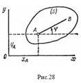 Положение фигуры S в плоскости Оху определяется положением какого-нибудь проведенного на этой фигуре отрезка АВ (рис. 28). В свою очередь положение отрезка АВ можно определить, зная координаты и точки А и угол , который отрезок АВ образует с осью х. Точку А, выбранную для определения положения фигуры S, будем в дальнейшем называть полюсом.