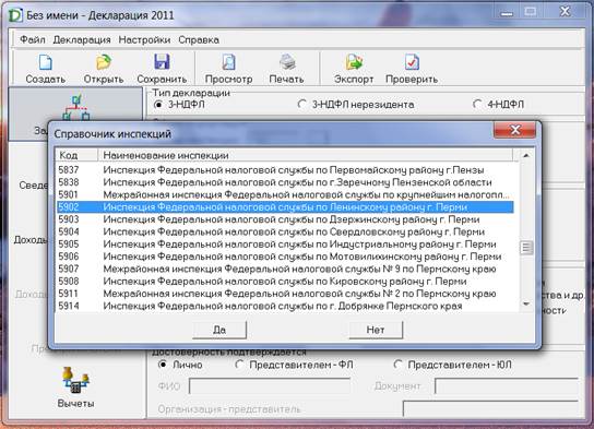 1. Зайти на сайт ФНС http://www.nalog.ru/el_usl/no_software/prog_fiz/3879939/ 2. Скачать InsD2011.exe. 3. Установить на компьютер и заполнить необходимую информацию с паспорта и справки с места работы 2-НДФЛ: 4. Выбираем из справочника № инспекции
