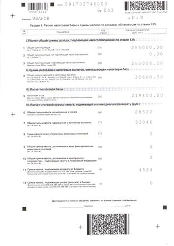 Сумма налога, подлежащая возврату видна на страницах 003 и 004 декларации.