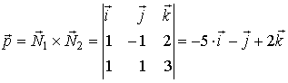 Эта система имеет решение Итак, опорная точка имеет координаты Найдём направляющий вектор прямой как векторное произведение нормальных векторов плоскостей: