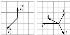 На тело в инерциальной системе отсчета действуют две силы. Какой из векторов, изображенных на правом рисунке, правильно указывает направление ускорения тела в этой системе отсчета?