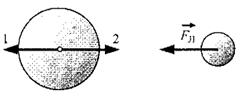 На рисунке приведены условные изображения Земли и Луны, а также вектор FЛ силы притяжения Луны Землей. Известно, что масса Земли примерно в 81 раз больше массы Луны. Вдоль какой стрелки (1 или 2) направлена и чему равна по модулю сила, действующая на Землю со стороны Луны? 1) вдоль 1, равна FЛ 2) вдоль 2, равна FЛ 3) вдоль 1, равна 81 FЛ 4) вдоль 2, равна FЛ/81