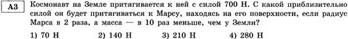 Комета находилась на расстоянии 100 млн км от Солнца. При удалении кометы от Солнца на расстояние 200 млн км сила притяжения, действующая на комету 1) уменьшилась в 2 раза 2) уменьшилась в 4 раза 3) уменьшилась в 8 раз 4) не изменилась У поверхности Земли на космонавта действует гравитационная сила 720 Н. Какая гравитационная сила действует со стороны Земли на того же космонавта в космическом корабле, который находится на расстоянии двух ее радиусов от земной поверхности?