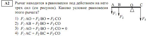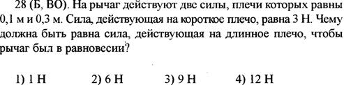 Ученик выполнял лабораторную работу по исследованию условий равновесия рычага. Результаты, которые он получил, занесены в таблицу: F1, Н || l1, м || F2, Н || l2, м 30? 15 0,4 Каково плечо l1, если рычаг находится в равновесии? 1) 1 м 2) 0,2 м 3)0,4 м 4) 0,8 м