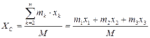 Таким чином, координата ХС центра мас матеріальної системи залишається сталою незалежно від переміщень тіл, що входять у систему. Визначимо положення центра мас системи в початковий момент часу: