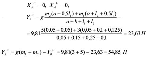 Тепер із рівнянь (8.2) знаходимо додаткові динамічні реакції шарнірів А і В через їх проекції на осі X та У.