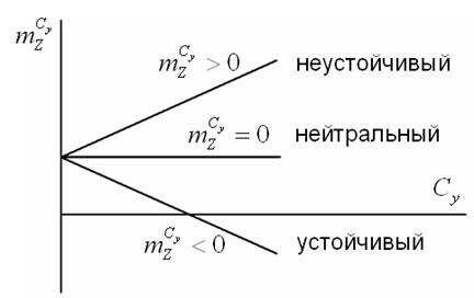 Условие продольной статической устойчивости: при увеличении В фокусе Центр масс