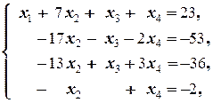 Решение. Так как коэффициент при x 1 в первом уравнении равен 1, то первое уравнение берём в качестве ведущего. После преобразований, совпадающими с преобразованиями этой системы в примере 1.1.1, приходим к системе