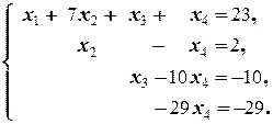 Аналогично, первое уравнение (полученной системы), умноженное на 2, вычитаем из 3-го, и его же, умноженное на 4, вычитаем из 4-го; приходим к системе: