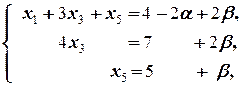 В этой системе, например, x 2 и x 4, могут принимать произвольные значения, скажем, x 2= a, x 4= b. Тогда эта система перепишется в виде