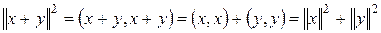 2°. Ортогональные и ортонормированные системы векторов. Из неравенства Коши–Буняковского следует, что корректно можно ввести следующее Определение 3. Для любых Определение 4. Элементы Очевидно, что если Лемма 1. Нулевой вектор ортогонален любому вектору из E Доказательство самостоятельно. Определение 5. Сумму Лемма 2. Квадрат гипотенузы равен сумме квадратов катетов. Доказательство: Обобщение. Если