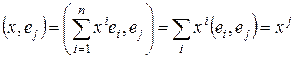 т.е. координаты произвольного вектора относительно ортонормированного базиса равны скалярным произведениям этого вектора на соответствующие базисные векторы. Поскольку скалярное произведение Таким образом, ортонормированный базис похож на ортонормированный базис в пространстве геометрических векторов. 3°. Выражение скалярного произведения через компоненты сомножителей. Матрица Грама. Пусть в произвольном евклидовом пространстве E