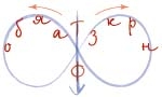 Справа или слева от вертикального сечения впишите букву в окружность, используя ее линию. Таким образом, линия окружности становится частью буквы. Вы сами решаете, в каком месте алфавитной восьмерки эта буква выглядит Вписав одну букву, снова чертите восьмерку и разделяете ее вертикальной линией. Упражнение с одной буквой проделывается каждой рукой три раза и три раза двумя руками одновременно. Чтобы максимально быстро расслабиться или настроиться на предстоящую работу, рекомендуется заполнять окружности восьмерки актуальными для вас фразами, используя указанный выше способ написания.