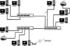 Локальная вычислительная сеть Локальная вычислительная сеть (ЛВС) - группа ЭВМ. а также периферийное оборудование, объединенные в пределах одного или нескольких близлежащих зданий автономными (не арендуемыми) высокоскоростными каналами передачи цифровых данных (проводными или беспроводными: медными, волоконно-оптическими, СВЧ или ИК-диапазона). Служит для решения информационных задач (например, в рамках какой-либо организации), а также совместного использования объединенных информационных и вычислительных ресурсов. ЛВС могут иметь в своем составе средства для выхода в Интернет. Каждый компьютер, включаемый в локальную сеть должен иметь сетевую плату, в разъем которой и подключается связующий кабель. Кабели, выходящие из различных компьютеров объединяются в устройстве, называемом сетевой концентратор (switch, HUB). Сетевые концентраторы также могут иметь связь друг с другом, объединяя вместе подсети различных участков здания. Таким образом, обеспечивается прохождение сигналов между всеми устройствами, включенными в сеть.