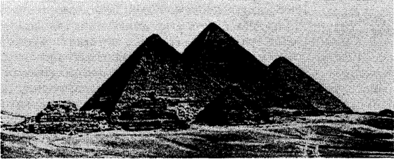 Самая знаменитая и самая значительная по размерам — пирамида фараона Хеопса в Гизе. Известно, что только дорогу к будущему месту строительства прокладывали 10 лет, а саму пирамиду — строили более 20 лет; на этих работах было занято огромное количество людей — сотни тысяч. Размеры пирамиды таковы, что внутри свободно мог бы разместиться любой европейский собор: высота ее составляла 146,6 м, а площадь — около 55 тыс. кв. м. Пирамида Хеопса сложена из гигантских известняковых камней, и вес каждой глыбы составляет примерно 2—3 тонны. Ученые подсчитали, какое количество камней должно было пойти на строительство этой пирамиды — 2300000. Удивительным было строительное искусство древних мастеров: камни пирамиды до сих пор так плотно пригнаны друг к другу, что между ними невозможно просунуть даже иголку. Снаружи вся пирамида Хеопса была облицована прекрасно отполированными известняковыми плитами, внутри имелось несколько длинных наклонных коридоров со сложной системой ходов и выходов. Их назначение — запутать грабителя, если ему удалось бы проникнуть внутрь сооружения. Пирамида Хеопса вместе с другими пирамидами, высящимися в Гизе, — Хефрена и Михерина, названа одним из семи чудес света. Вокруг пирамид великих фараонов находится множество гробниц, которые образуют целый город со своими улицами и перекрестками. Во II тыс. до н. э. пирамиды стали строить из кирпича, а не из камня — это было чуть менее разорительным, да и сами пирамиды становятся меньше. К началу I тыс. до н. э. для усыпальниц фараонов стали отводиться глубокие и тщательно скрытые от чужих глаз тайники. Однако и эти тайники грабили также часто, как и пирамиды. Разграбление усыпальниц фараонов было свойственно всем периодам древнеегипетской истории, хотя египтяне боготворили и боялись своих фараонов. Усыпальницами позднего времени являются заупокойный храм^фараона Ментухотепа I, построенный в виде скальной гробницы, и возведенный в XV в. до н. э. в долине Дейр-адь-Бахри на трех скальных террасах заупокойный храм царицы Хатшепсут (для украшения его было использовано более 200 скульптур).