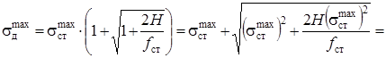 Таким образом, динамические напряжения зависят от объёма конструкции и материала. Условие прочности: Где