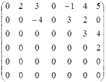 Теорема 5 (о ступенчатой матрице). 1. Каждая матрица элементарными преобразованиями строк приводится к ступенчатой. 2. Ранг ступенчатой матрицы равен числу ненулевых строк. Доказательство. 1) Если некоторый элемент Возьмем первый слева ненулевой столбец и переставим строки так, чтобы в первой строке оказался этот ненулевой элемент (если первый элемент этого столбца был ненулевым, то переставлять строки не надо). Элементарными преобразованиями все элементы столбца можно сделать нулями. Первая строка ступенчатой матрицы готова: все ненулевые элементы второй и нижних строк стоят правее первого ненулевого элемента первой строки. Применим ту же процедуру к матрице, начиная со второй строки: возьмем первый слева столбец, содержащий ненулевые элементы, переставим так, чтобы во второй строке был ненулевой элемент и т.д. После этого будет готова и вторая строка. Так как строк конечное число, то процесс конечен. 2) Пусть в ступенчатой матрице Пример. В выше рассмотренном примере