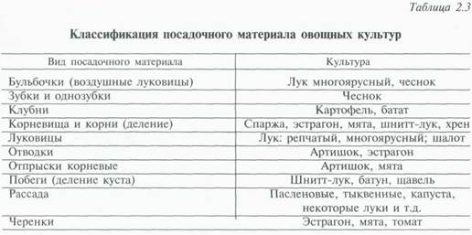Кроме семян для размножения овощных культур используют различные вегетативные органы растения. Основные виды посадочного материала для вегетативного размножения овощных культур приведены в табл. 2.3.
