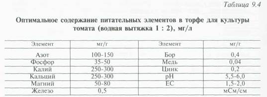 Субстрат для малообъемной технологии должен отвечать определенным требованиям: не выделять токсические вещества, не нарушать питательный режим и не менять реакцию раствора, иметь высокую пористость, хорошую аэрированность и влагоемкость, прочность при использовании (табл. 9.9). Несмотря на широкое внедрение минеральной ваты, торф остается в нашем овощеводстве одним из основных субстратов. Благодаря низкой объемной массе, высокой пористости и значительной емкости поглощения, он с успехом используется для малообъемного способа выращивания растений в теплицах. Преимущества торфа перед минеральной ватой (особенно одногодичного срока использования) следующие: сравнительная дешевизна, наличие би-остимулирующих свойств, выделение большого количества СО2, простота утилизации.
