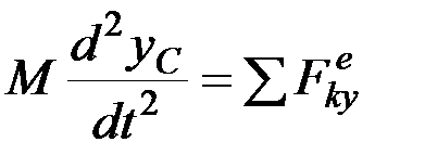 Уравнение (7.4) выражает теорему о движении центра масс системы. По внешнему виду оно совпадает с уравнением, определяющим закон движения материальной точки, у которой масса Проектируя обе части равенства (7.4) на оси координат, получим: