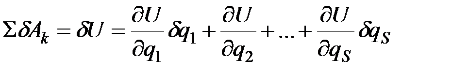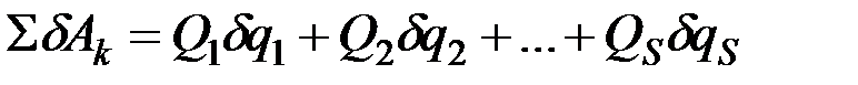 Величина Очевидно, что если системе сообщить такое возможное перемещение, при котором одновременно измеряются все её обобщённые координаты, то сумма элементарных работ приложенных сил на этом перемещении определится равенством: