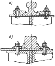 Крепление к подкрановым стальным балкам. а — рельса; б — бруска