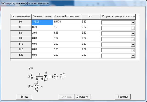 Рисунко 12. Оценка коэффициента модели (з). По результатам вычислений формируется таблца оценко коэффициентов модели (рис. 13).