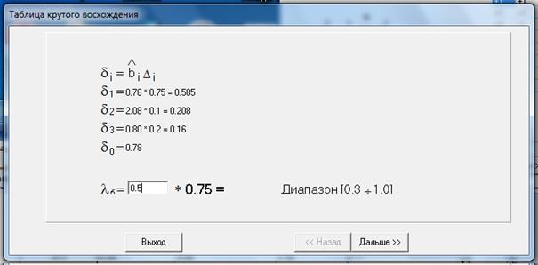 Рисунок 14. Построение таблицы крутого восходжения (б).
