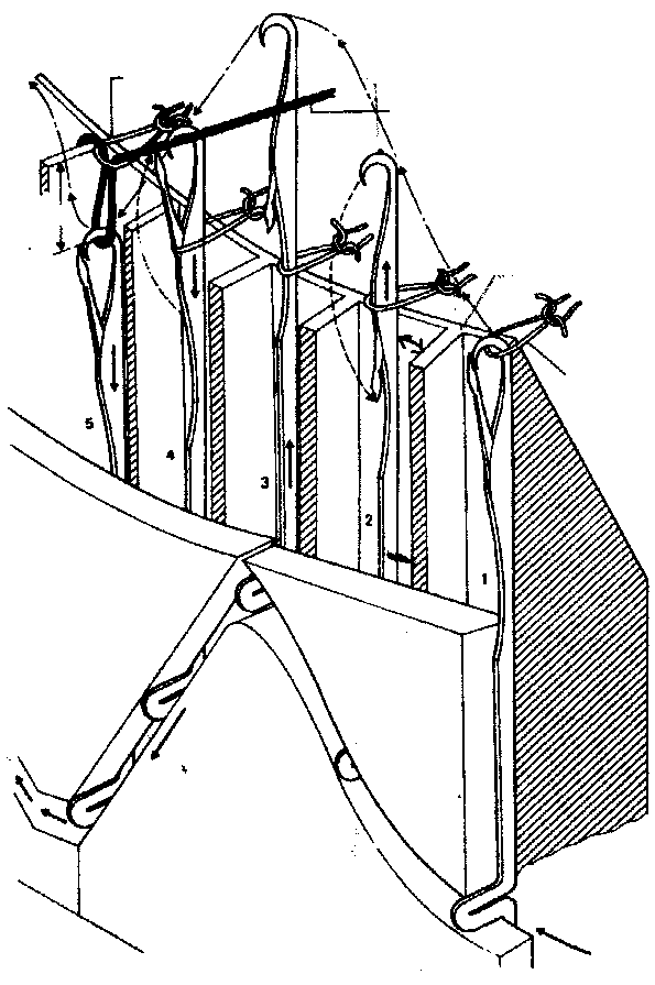 Иглы 1 и 3 вяжут в верхнем, а иглы 2,4 в нижнем цилиндре, стрелкой а показано направление вращения игольных цилиндров. Нитеводитель 5 имеет два отверстия: для платировочной нити Нп и для грунтовой Нг , которые расположены на одной горизонтальной оси. С торцевой части рабочая плоскость нитеводителя срезана, в результате образован уступ С. Поэтому грунтовая и платированная нити подаются К иглам машины с различными углами приближения: άп<άг. Следовательно, грунтовая нить прокладывается ближе к крючкам игл обеих игольниц, а платированная дальше. Здесь углы наклона для грунтовой и платированной нитей почти равны (βг=βп). Рисунок б --- видно располжение нитей в петлях, образованных на иглах 2,3,4. Если заправить нити двух цветов: грунтовую белого цвета, а платировочную чёрного, то получим петельные столбики разного цвета. Чередуя лицевые и изнаночные петельные столбики, можно получать различные рисунки. Игольницы расположены под углом меньше 1800. Рассмотрим два варианта. Date: 2015-09-18; view: 1132; Нарушение авторских прав |