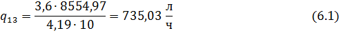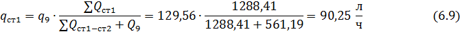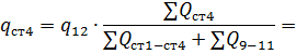 Циркуляционные расходы (qcir) распределяются между ответвлениями пропорционально потерям тепла этих ответвлений: