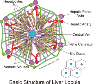 Схема строения печёночной дольки Цирроз печени — хроническое прогрессирующее заболевание печени, характеризующееся нарушением её дольковой структуры за счёт разрастания соединительной ткани и патологической регенерации паренхимы; проявляется функциональной недостаточностью печени и портальной гипертензией. Наиболее частыми причинами заболевания являются хронический алкоголизм (удельный вес алкогольных циррозов печени составляет в разных странах от 20 до 95 %), вирусный гепатит (составляет 10—40 % от всех циррозов печени), наличие в печени гельминтов (чаще всего описторхис, фасциола, клонорхис, токсокара, нотокотилус), а также простейших, в том числе, трихомонада. Рак печени — тяжёлое заболевание, являющееся причиной смерти более миллиона людей каждый год. Среди опухолей, которые поражают человека, это заболевание находится на седьмом месте. Большинство исследователей выделяет ряд факторов, с которыми связан повышенный риск развития рака печени. К ним относятся: цирроз печени, вирусный гепатит В и С, паразитарные инвазии печени, злоупотребление алкоголем, контакт с некоторыми канцерогенами (микотоксинами) и другие. Возникновение доброкачественных аденом, ангиосарком печени, гепатоцеллюлярной карциномы связаны с воздействием на человека андрогенных стероидных контрацептивных и анаболических препаратов. Основные симптомы рака печени: